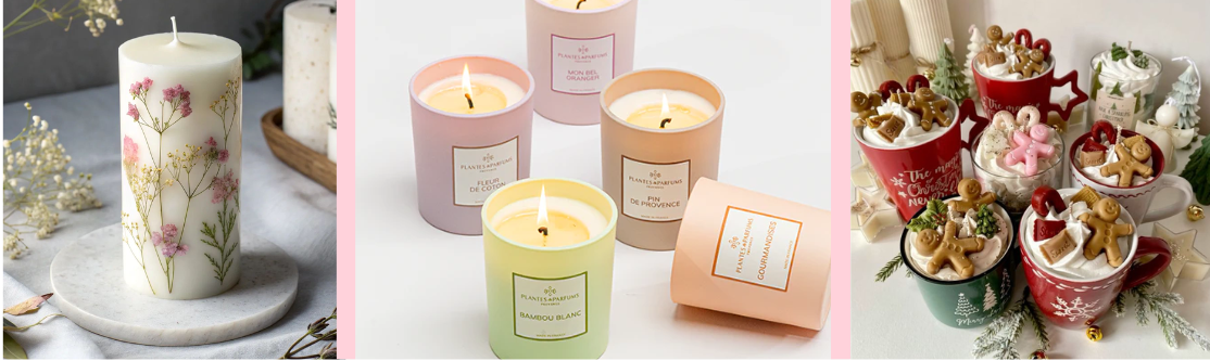 Nous vous proposons également des ateliers créatifs de personnalisation de bougies, où vous pouvez laisser parler votre imagination : ajouter des fleurs séchées, des décorations, jouer avec les couleurs, la forme ou encore la peinture… Chaque bougie devient une pièce unique, façonnée par vos idées.